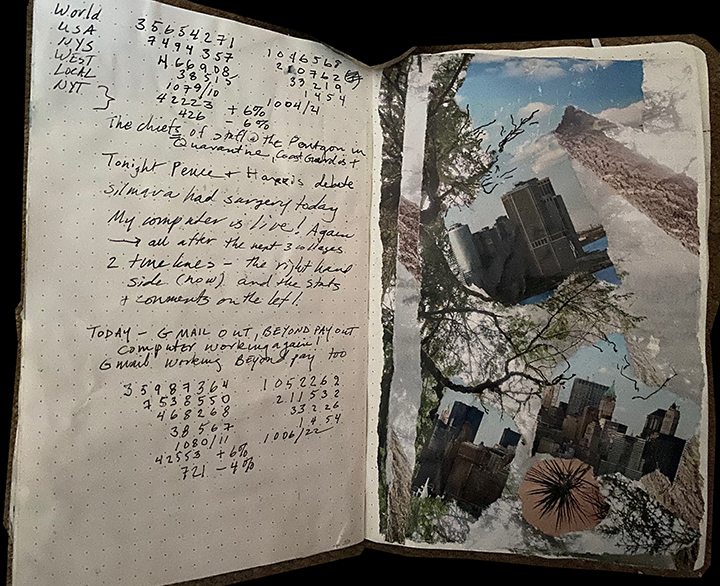 In one year fill the 96 pages of your notebook with drawings/sketches, poetry, writing, lyrics, journaling, word art, cartoons, puzzles, collages+, questions, photos, image montages, rubber stamping, stickers, cutting, fold-outs, ideas, graphics, protests, digital art, abstractions, or non-objective art of color, line, texture, shapes, etc.