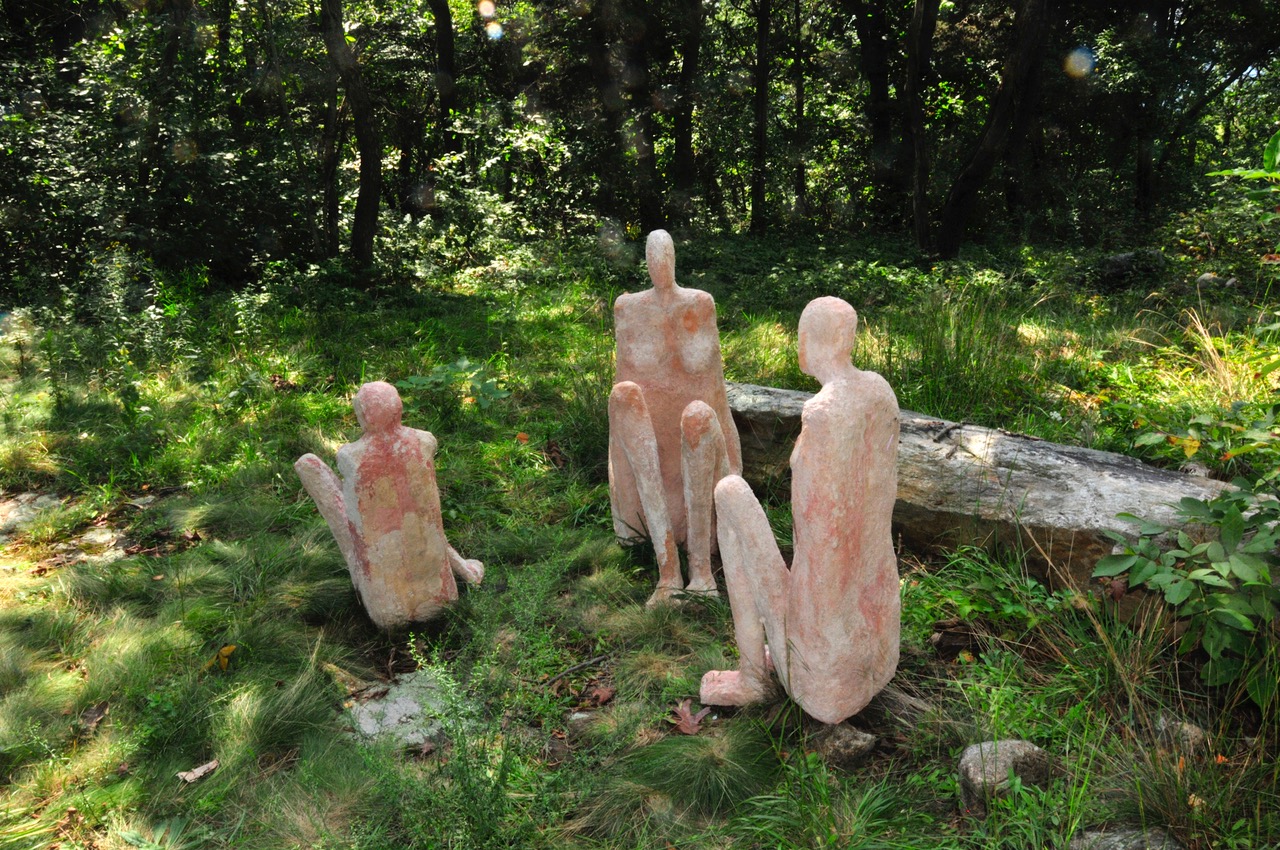 Figure on a Bench, Colored cement over foam, in situ at Highland Falls