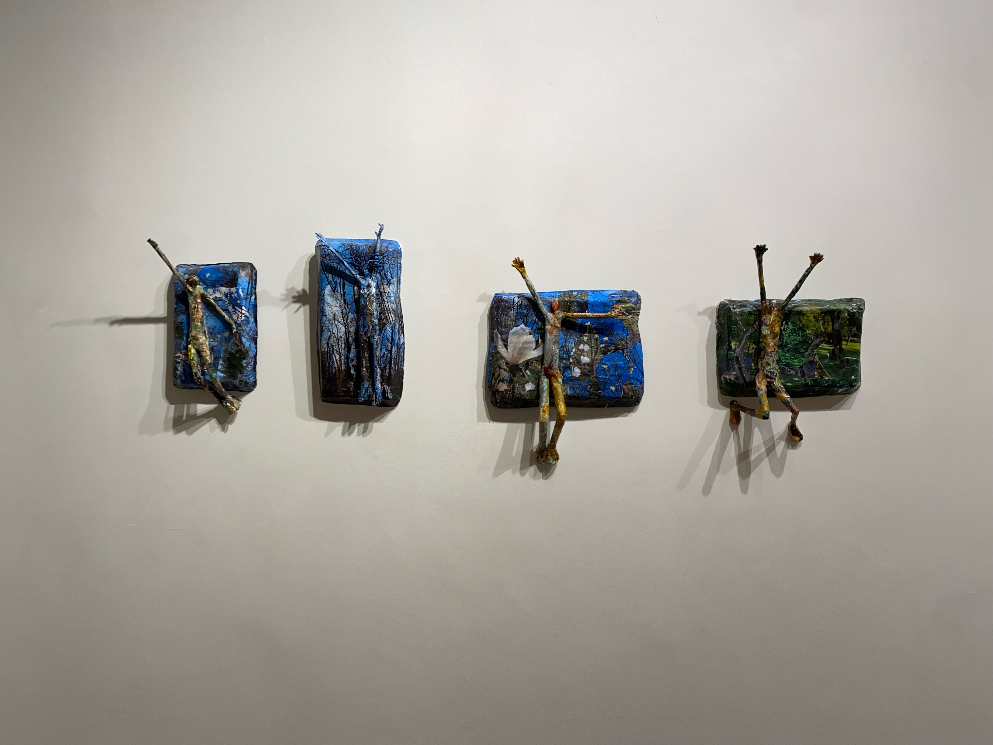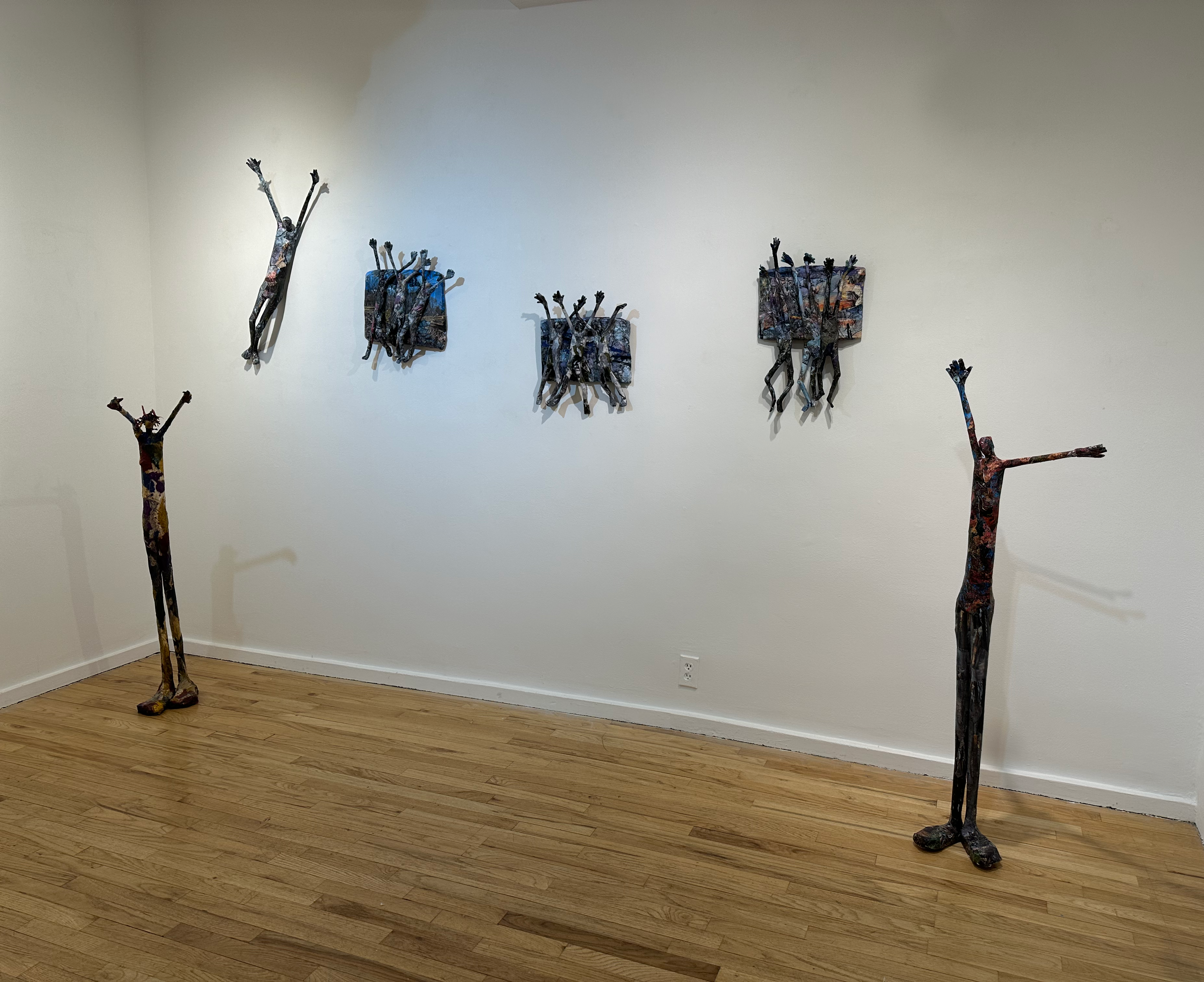 Figurative artists Jo-Ann Brody (3-D) and Liz Ndoye (2D) team up again with sculpture and installation in conversations with each other and between artists. Liz Ndoye continues her love for and exploration of the lives of her doll creatures, their culture, and way of life. Jo-Ann Brody merges her figures with tree imagery from her own photos and media images.