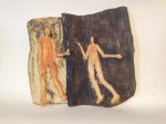 Brody creates books and journal pages in clay colored with oxides. It is a method of presenting more complex narratives. Many books have double sided pages and are bound, some are ‘pages’ from a journal, and some are writing on torsos without a page reference at all. Current books explore events just distant enough for some objectivity as she explores issues ranging from surgery, illness, being “the good daughter,” from infertility and divorce. The words come from songs, and musings about life, family, and aging. The accompanying writing is half poetical and half stream of consciousness. The female body serves as Brody’s palette. Mother, wife, old lady, artist, friend – growing older; it’s about (re)evaluating life.