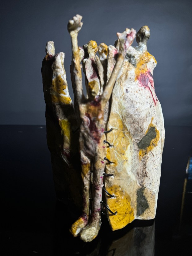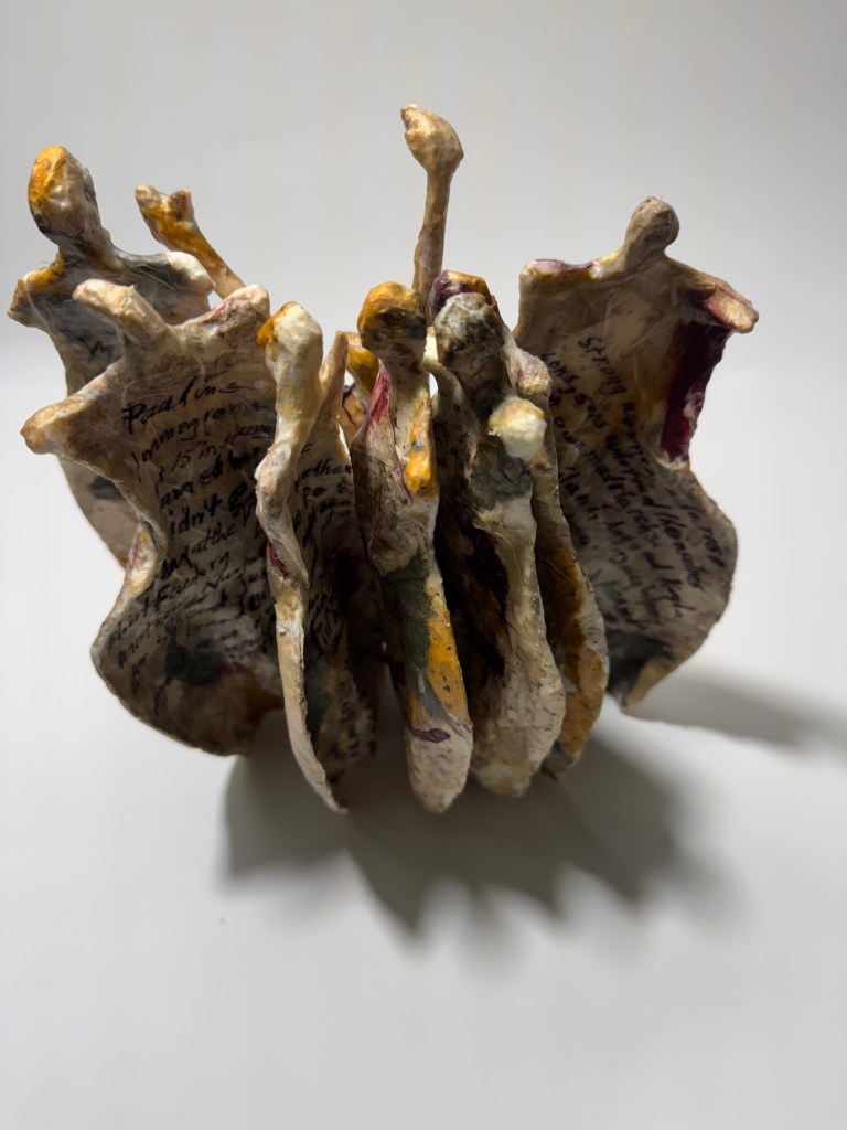 Matriarchy, 2025, Papier Mache and leather binding, 9 x 5.5 x 3 inches folded.