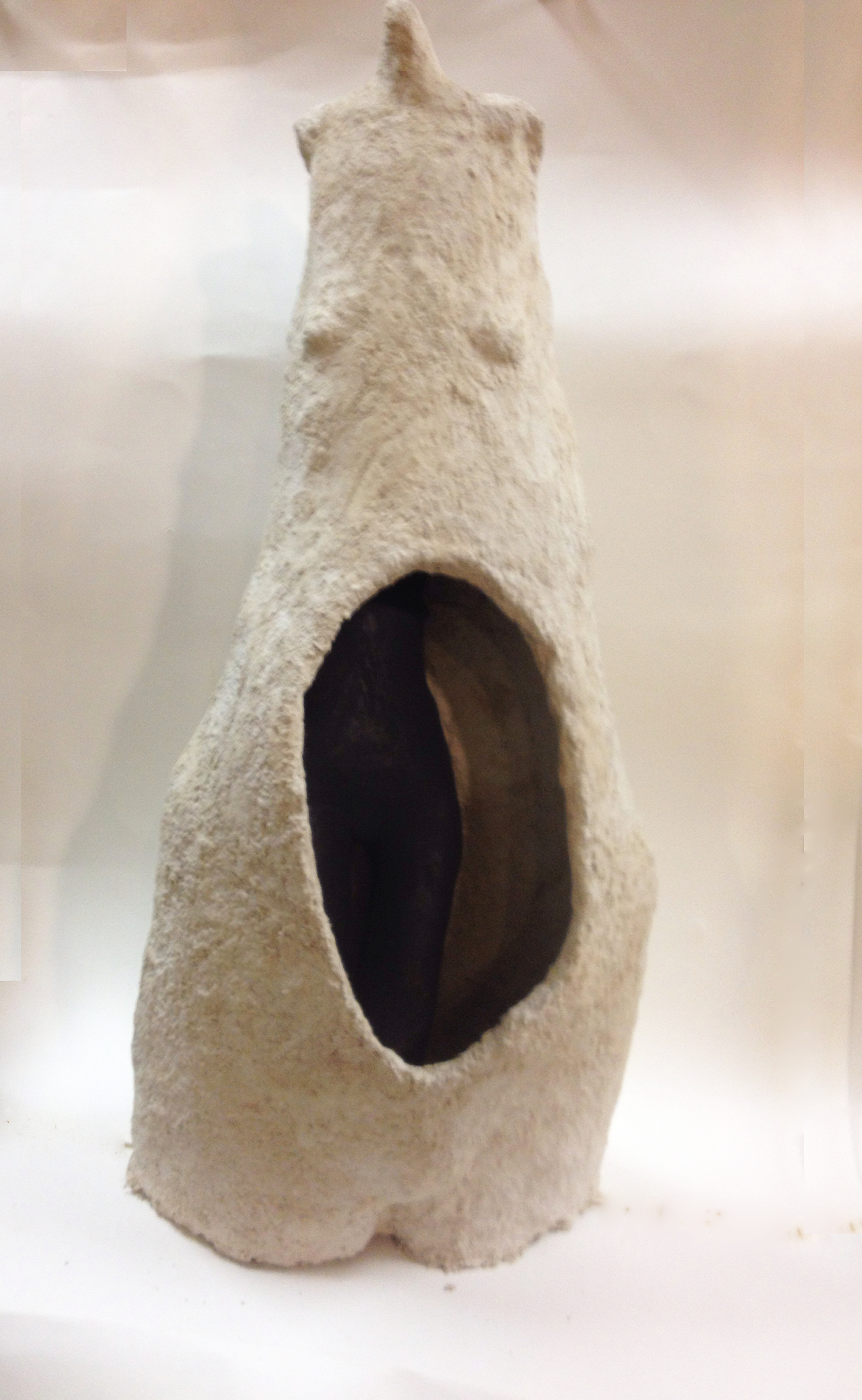 - Torso/Outside In; fossilcrete, stoneware; 31 x 14 x 11′; 2014