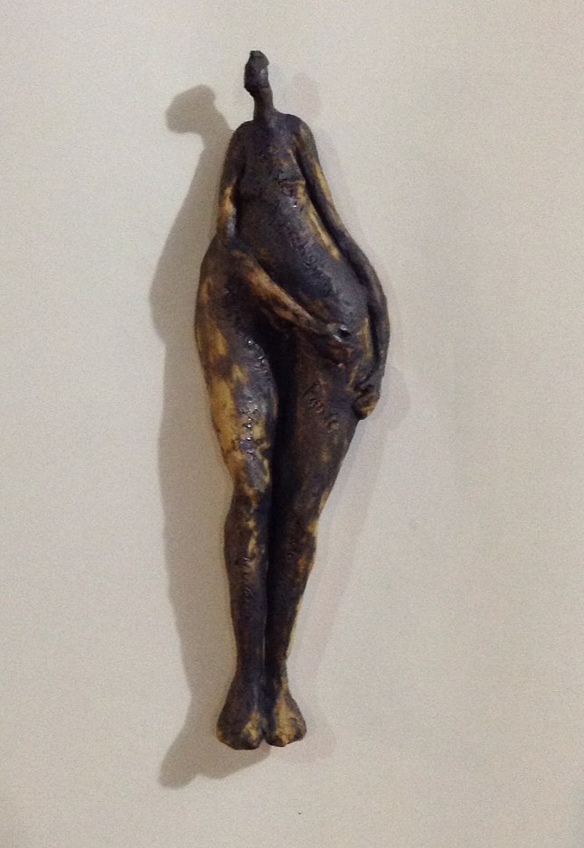 Tension, Apprehension; stoneware, acrylic; 14 x 4 x 2″, 2014